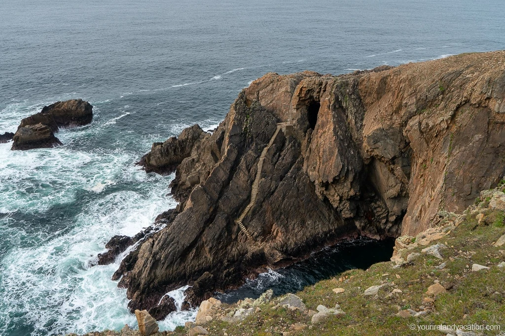 Crohy Head Sea Arch tip: do not try to access the beach at Crohy Head Sea Arch when the tide is in or in wet weather as it can be very dangerous. The descent to the beach is very steep and even on a good day even experienced hikers will need to take care and wear proper foot wear.